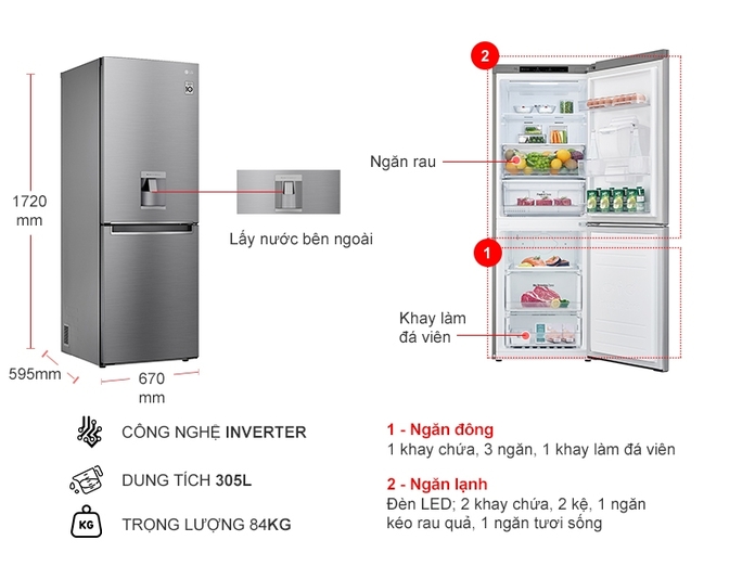 dung tích 305 lít, chiếc tủ lạnh LG này là một lựa chọn phù hợp cho những gia đình có từ 3 – 4 thành viên.