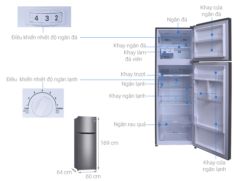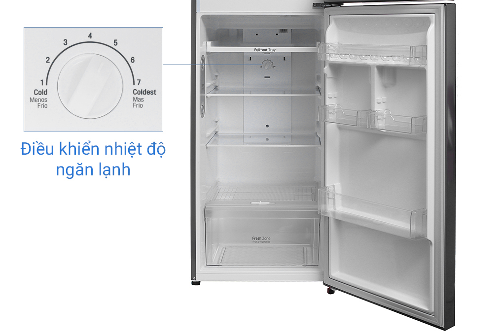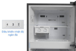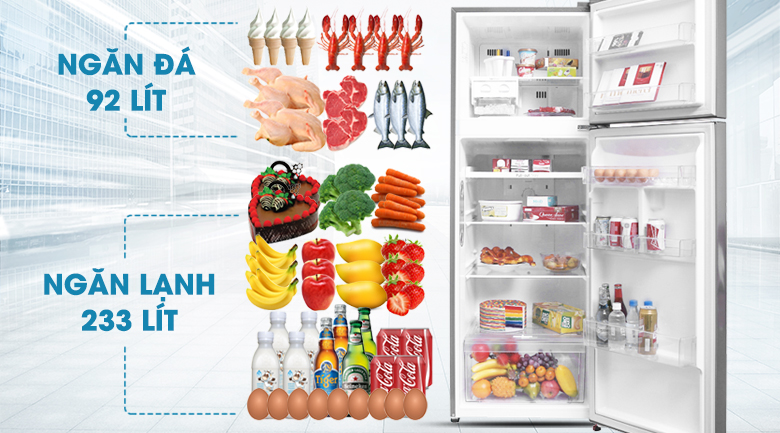 Tủ lạnh có dung tích tổng lên đến 315 lít, sức chứa ngăn đá 92 lít, ngăn lạnh 233 lít, cho phép bạn bảo quản thoải được nhiều loại thực phẩm khác nhau, sản phẩm phù hợp cho gia đình có 3 – 4 thành viên.