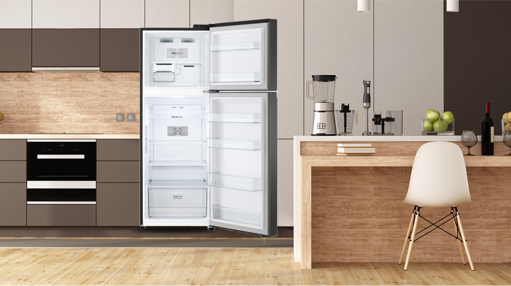 Chiếc tủ lạnh LG Inverter này có thiết kế ngăn đá trên quen thuộc và có nhiều tính năng để phục vụ cho nhu cầu của người dùng như công nghệ Inverter tiết kiệm điện, Door Cooling làm lạnh từ cánh cửa tủ, Liner Cooling,… Đây là sản phẩm phù hợp với gia đình từ 3 – 4 thành viên.