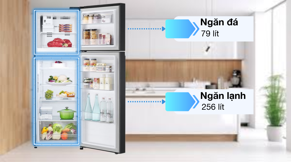 – Dung tích ngăn lạnh 256 lít, dễ dàng lưu trữ nhiều loại thực phẩm sử dụng thường xuyên như rau củ, trái cây, đồ uống.