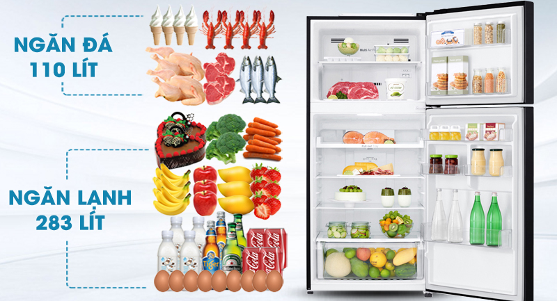 Với dung tích 393 lít, trong đó ngăn đá 71 lít và ngăn mát 283 lít, là một trong những mẫu tủ lạnh phù hợp dành cho các hộ gia đình có khoảng 3 đến 4 thành viên sử dụng.
