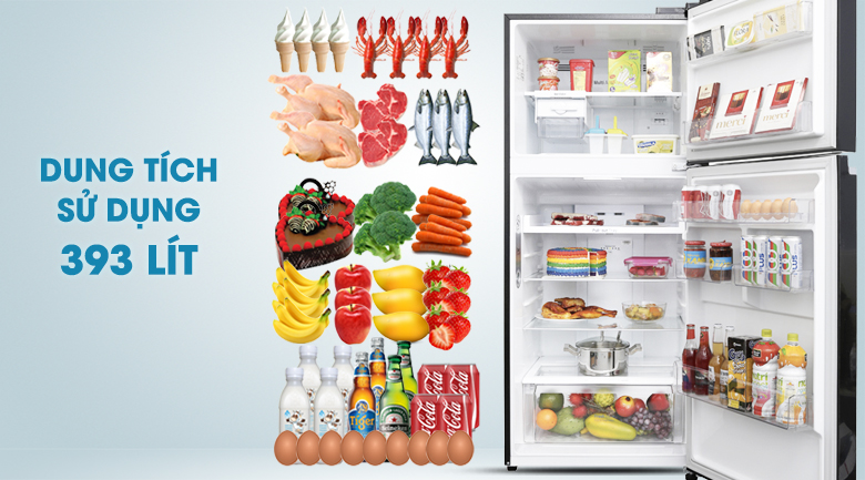 Tủ lạnh với dung tích 393 lít, rất phù hợp với gia đình có từ 3 – 4 người.