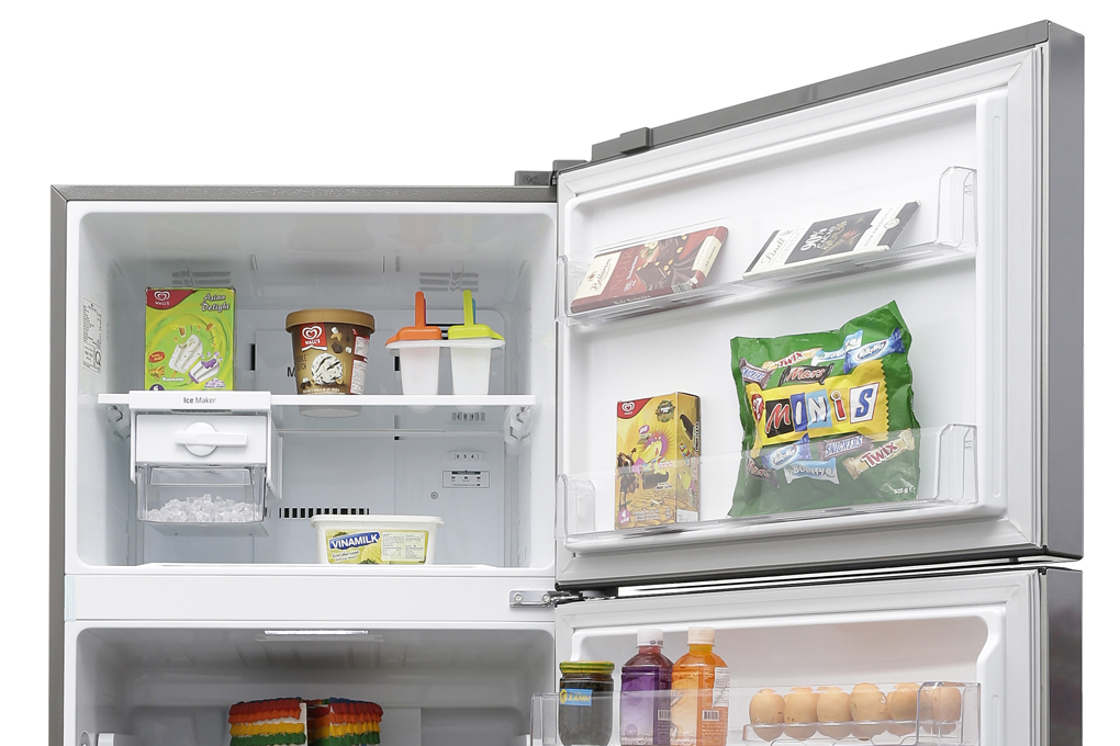 Nhờ có sự sắp xếp linh hoạt trong thiết kế với khay đá di động, giờ đây, người sử dụng có thể dễ dàng lấy ra hoặc lắp vào một cách nhanh chóng và dễ dàng, giúp người dùng tiết kiệm được rất nhiều thời gian và tạo không gian cho tủ lạnh Inverter này.