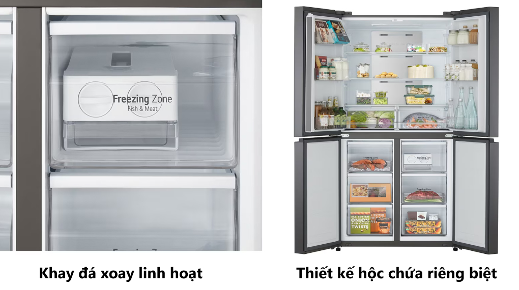 – Thiết kế có hộc chứa riêng biệt giúp lưu trữ thực phẩm đông lạnh được hiệu quả, ngăn lẫn mùi thực phẩm.