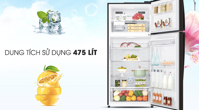 Dung tích 475 lít phù hợp gia đình từ 4 – 5 thành viên, đáp ứng nhu cầu lưu trữ thực phẩm thường ngày.
