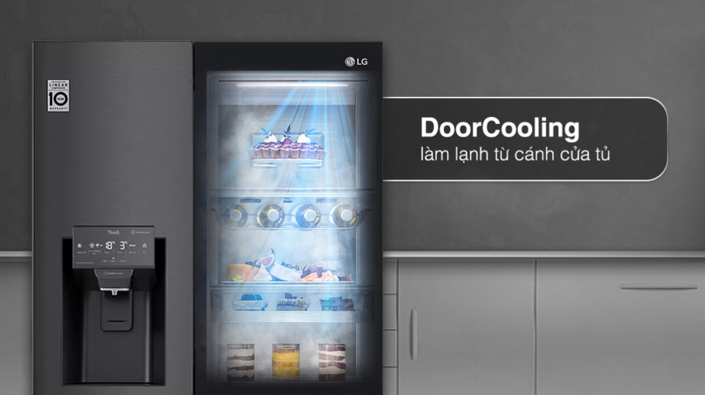 – Hệ thống làm lạnh Door Cooling với các luồng khí lạnh được tạo ra từ cửa của tủ, cung cấp cho thực phẩm chứa trong các ngăn của tủ một nhiệt độ làm lạnh hiệu quả nhất. Door Cooling™ bắt đầu 15 giây sau khi cửa đóng lại.