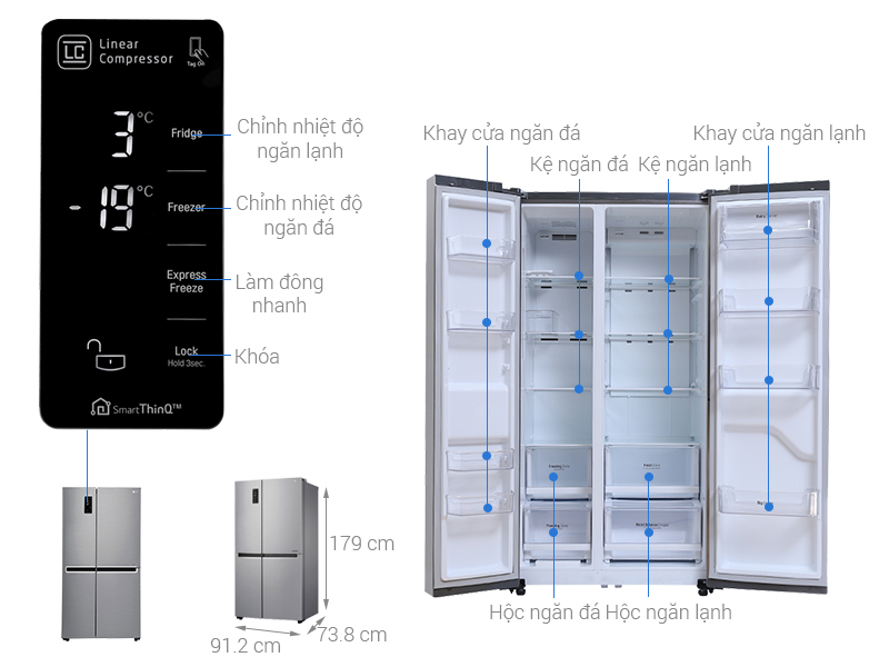 Tủ lạnh LG Inverter 626 lít GR-B247JS thuộc dòng tủ lạnh Side by side, với thiết kế hiện đại dễ dàng thuận tiện cho người dùng khi sử dụng, sản phẩm còn làm điểm nhấn cho nội thất gia đình nhà bạn với kiểu dáng sang trọng, kết hợp với các đường nét bắt mắt trên thân tủ vô cùng độc đáo. Tủ còn có bảng điều khiển bên ngoài vô cùng tiện lợi cho bạn.