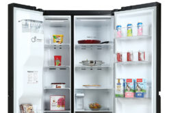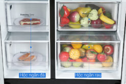 • Tủ lạnh cỡ lớn Side by side với chất liệu cửa tủ là thép không gỉ màu đen nhám sang trọng, hiện đại.