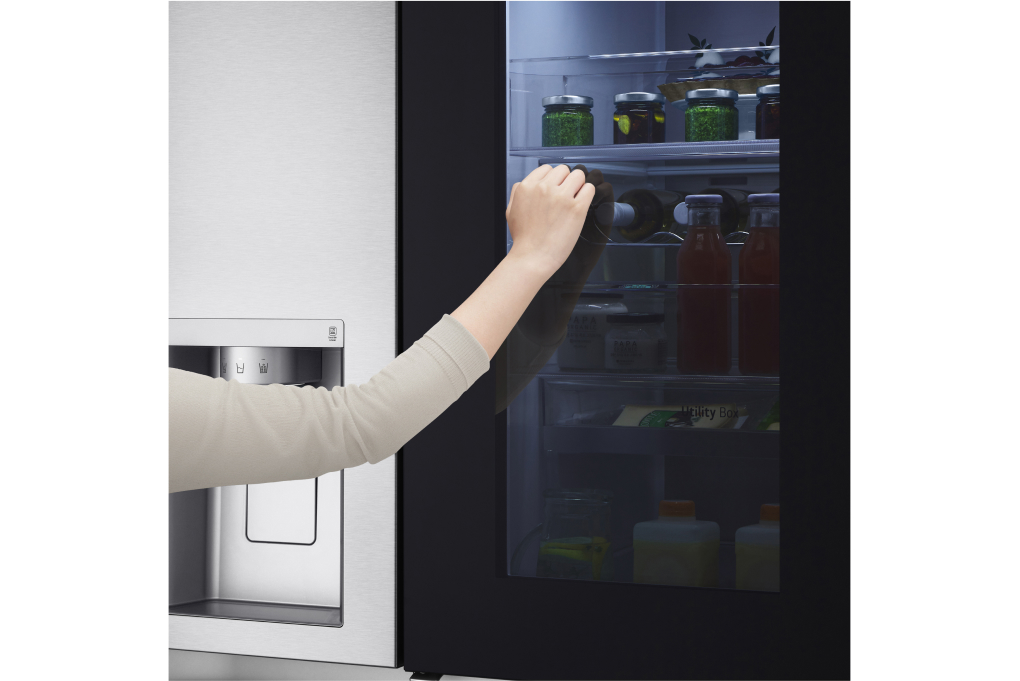 – Đặc biệt là thiết kế Door-in-Door khi gõ 2 lần lên cánh tủ là có thể nhìn thấu bên trong, nhờ đó giảm thất thoát khí lạnh và giúp rau quả được bảo quản lâu hơn.