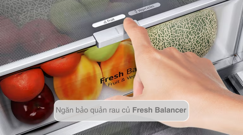 – Ngăn bảo quản rau củ cân bằng ẩm lưới mắt cáo 2 chế độ Fresh Balancer giúp giữ độ ẩm tối ưu, tránh tình trạng trái cây rau củ bị mất nước, từ đó luôn giữ được độ tươi lâu hơn.