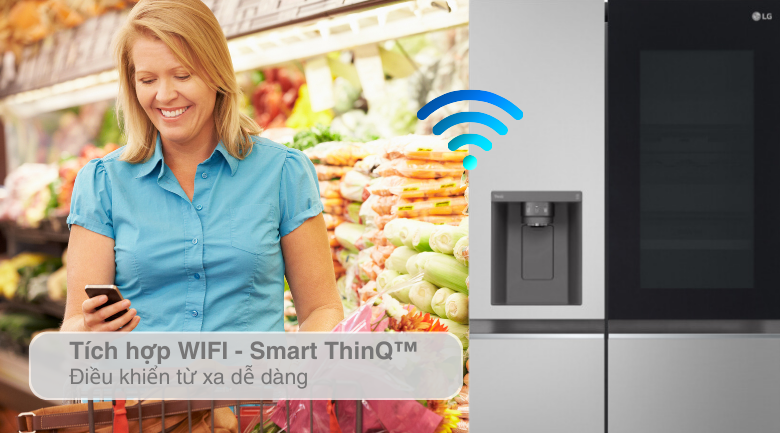 – Tích hợp WIFI – Smart ThinQ™: kết nối tủ lạnh với điện thoại thông minh, tiện theo dõi và điều khiển tủ lạnh từ xa.