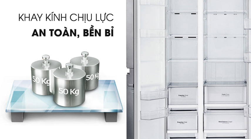Khay kính chịu lực của tủ lạnh Side By Side B257JDS có thể đỡ được vật nặng đến 150kg, bạn hoàn toàn có thể yên tâm đặt những thực phẩm có sức nặng mà không lo bị vỡ.