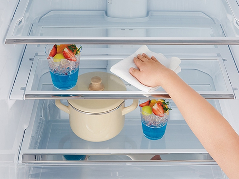 Tủ lạnh có hệ thống khay đựng và ngăn chứa linh hoạt, khay đá xoay di động tiện dụng, đèn LED chiếu sáng tốt và tiết kiệm hơn. Khay kính chịu lực đến 100 kg và dễ dàng chùi rửa.