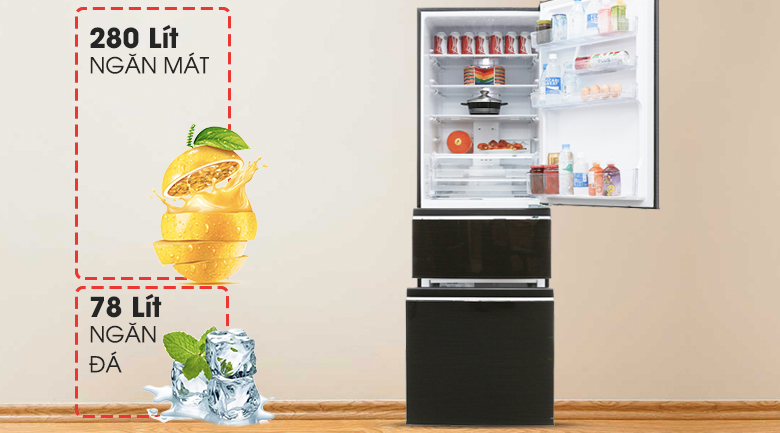 Với dung tích 358 lít, chiếc tủ lạnh Mitsubishi Electric là một sự lựa chọn đáng cân nhắc cho gia đình có từ 3 – 4 người.