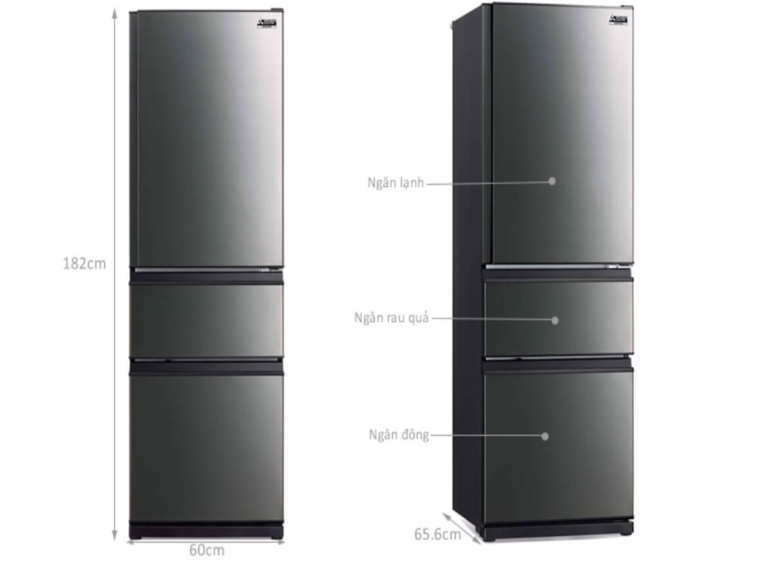Tủ lạnh Mitsubishi Electric Inverter 365 lít MR-CX46ER-BSTThiết kế gọn gàng, tiện dụngTủ lạnh Mitsubishi MR-CX46ER-BST sở hữu kiểu dáng hiện đại, cao cấp, sang trọng, thuộc dòng tủ lạnh 3 ngăn được bố trí tiện dụng, 1 ngăn đông và 2 ngăn mát gọn gàng tạo sự thoải mái khi sử dụng. Thiết kế khoang rộng nhưng bề ngoài khá nhỏ gọn giúp bạn dễ dàng lắp đặt.