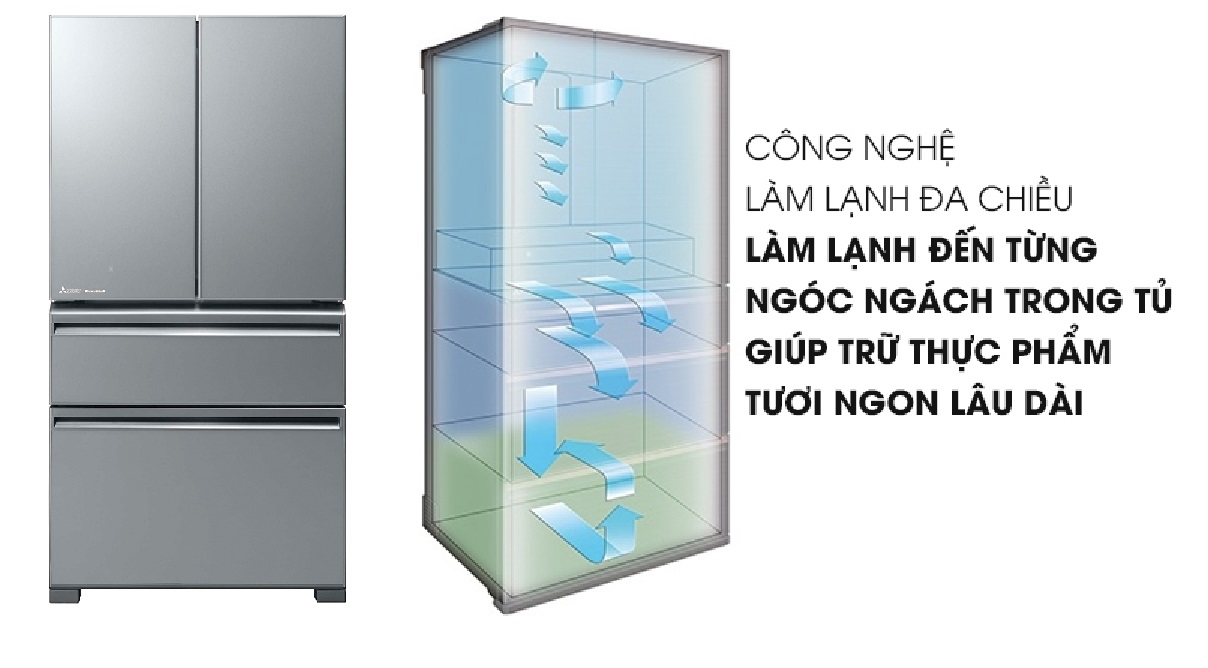 Công nghệ làm lạnh đa chiều, mang hơi lạnh lan tỏa đến từng ngóc ngách trong tủ