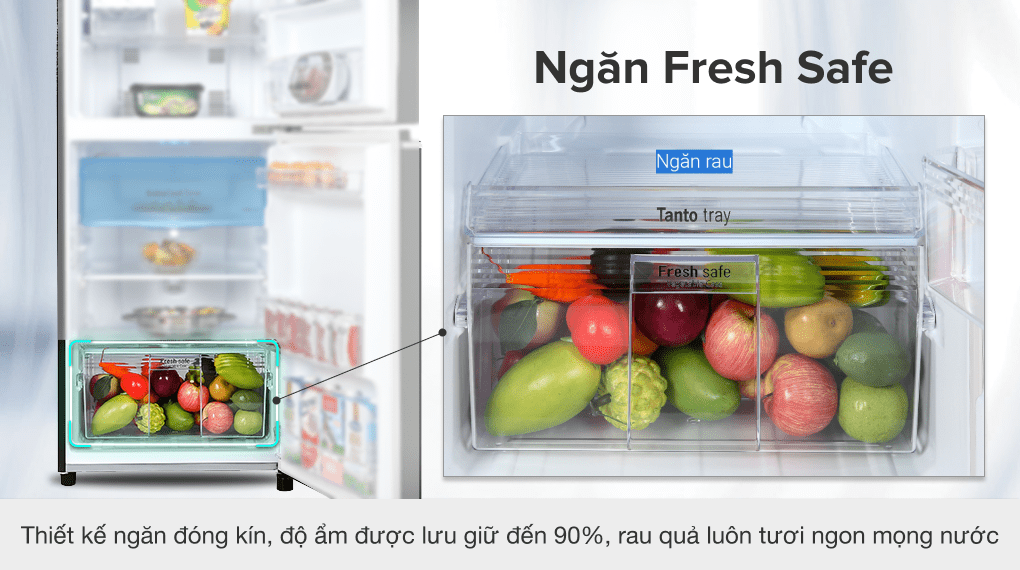 Với khả năng duy trì độ ẩm lý tưởng, rau củ quả sẽ luôn ở tình trạng tươi ngon và mọng nước, sẳn sàng phục vụ cho nhu cầu của gia đình ở bất kỳ thời điểm nào. Ngăn rau củ Fresh Safe là một công nghệ bảo quản thực phẩm tiện lợi dành cho bà mẹ nội trợ khi lưu trữ nhiều loại trái cây, rau quả, củ.