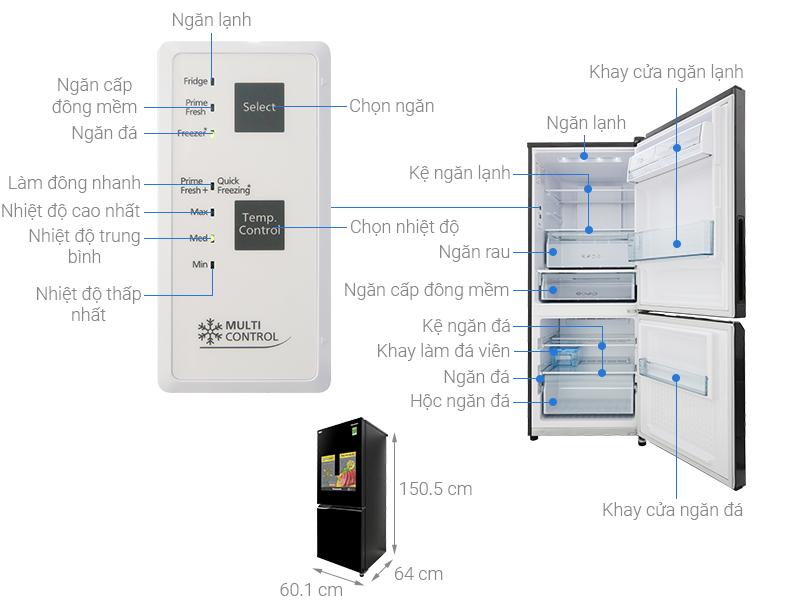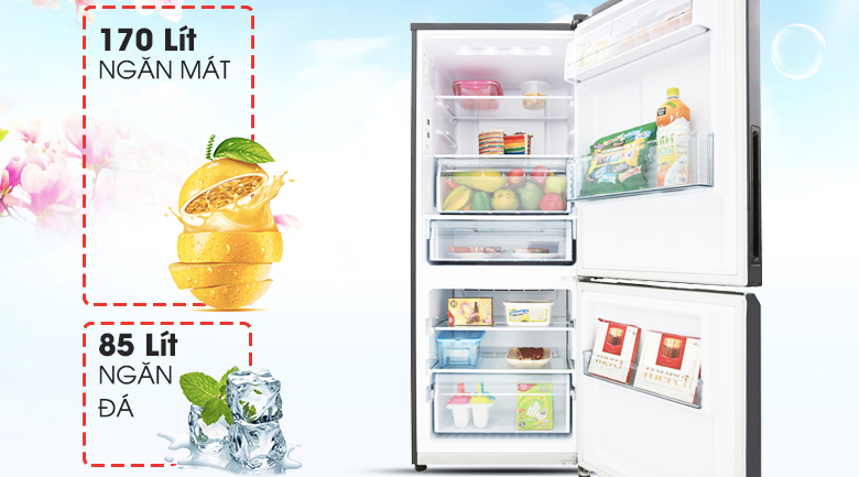 Với mức dung tích 255 lít trong đó dung tích ngăn mát 170 lít, ngăn đông 85 lít, chiếc tủ lạnh này đáp ứng nhu cầu lưu trữ bảo quản thực phẩm cho gia đình có 2 – 3 thành viên sử dụng.