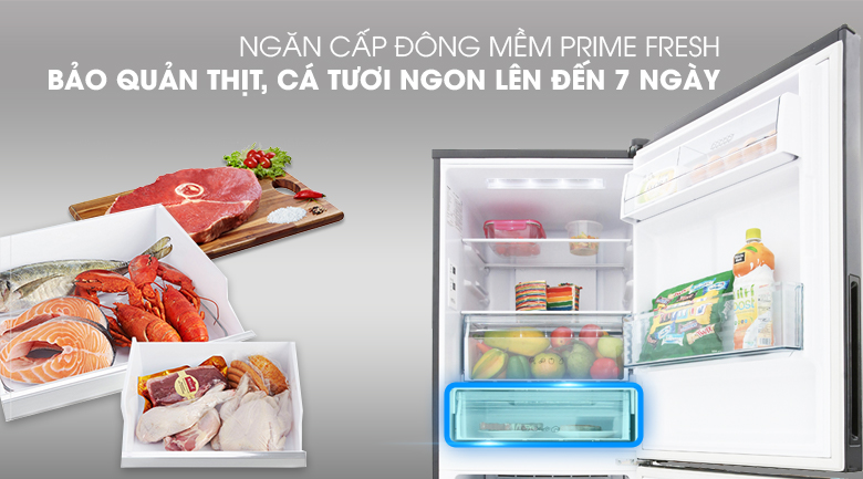 Ngăn đông Prime Fresh Plus này giữ cho nhiệt độ ở mức -3 độ C mà không làm cho thịt cá đông đá, tươi ngon và giữ chất dinh dưỡng lên đến 7 ngày. Ngoài ra ngăn đông mềm thiết kế dạng kín giúp hạn chế lây lan mùi hôi ra các ngăn khác.