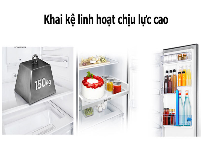 Bạn có thể điều chỉnh chiều cao của khay để bảo quản hiệu quả hơn và tiện lợi hơn. Thiết kế khay kính chịu lực mạnh có thể chịu tải lên tới 150kg, nhờ đó bạn có thể cất nồi hầm, chai lọ lớn và các món đồ nặng khác. Bên cạnh đó, còn có khay đá kín linh hoạt, bạn chỉ cần xoay khay để lấy đá. Có thể đặt ở mọi vị trí. Nhờ vậy, giúp dễ dàng sắp xếp thực phẩm.