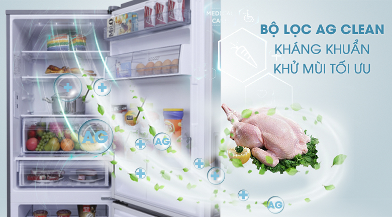Công nghệ kháng khuẩn khử mùi:Công nghệ kháng khuẩn Ag Clean với tinh thể bạc Ag+