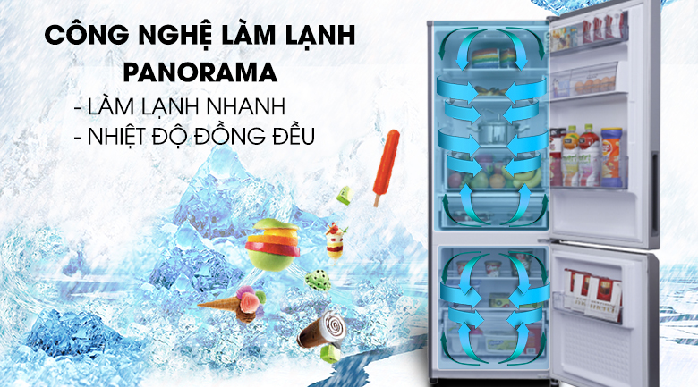 Tủ lạnh 2 cửa trang bị công nghệ Panorama có khả năng phân phối hơi lạnh nhanh chóng và đồng đều đến tất cả các vị trí trong tủ lạnh, kể cả các vách ngăn của tủ. Chất lượng thực phẩm sẽ luôn được đảm bảo cho dù bạn đặt ở bất kỳ ngóc ngách nào.