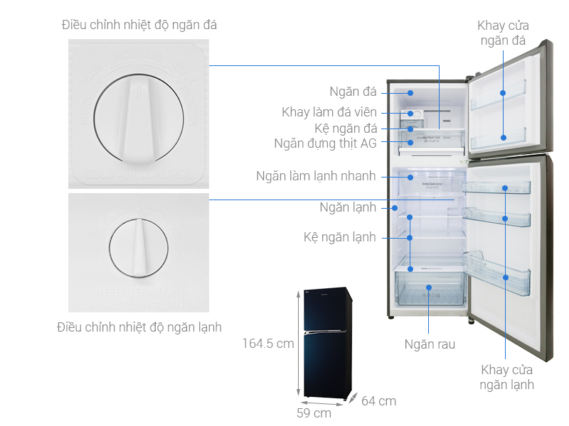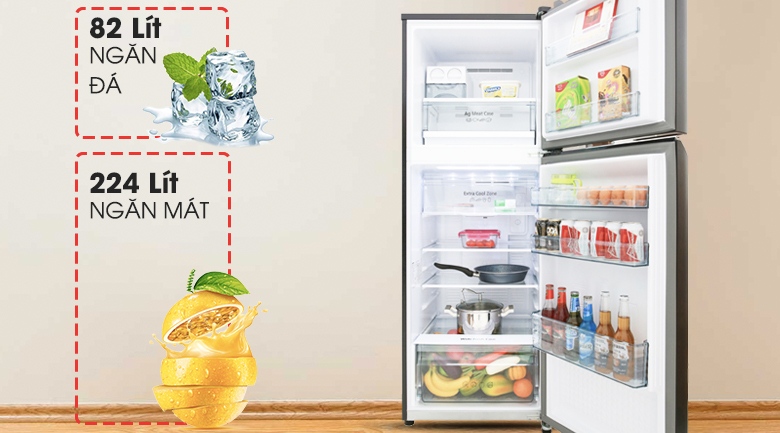 Với dung tích 306 lít, tủ lạnh là sự lựa chọn lý tưởng cho gia đình 3 – 4 người sử dụng.