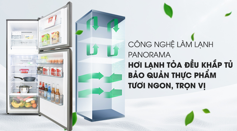 Công nghệ làm lạnh Panorama của tủ lạnh Panasonic sẽ mang hơi lạnh lan tỏa đều đến từng ngóc ngách, ngay cả khi thực phẩm chứa đầy trong tủ