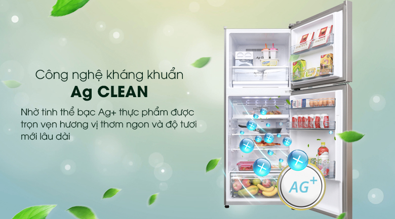 Ứng dụng công nghệ Ag Clean với tinh thể bạc Ag+ trong quá trình kháng khuẩn, khử mùi, tủ lạnh sẽ loại bỏ đến 99.9% vi khuẩn gây hại và mùi hôi khó chịu bên trong tủ lạnh, bảo vệ thực phẩm của bạn luôn được tươi ngon, trọn vị.