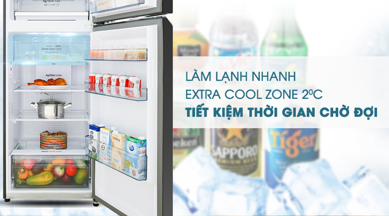 Với ngăn làm lạnh Extra Cool Zone có mức nhiệt là 2 độ C, bạn sẽ nhanh chóng được thưởng thức món nước giải khát hoặc trái cây ướp lạnh yêu thích mà không phải chờ lâu.