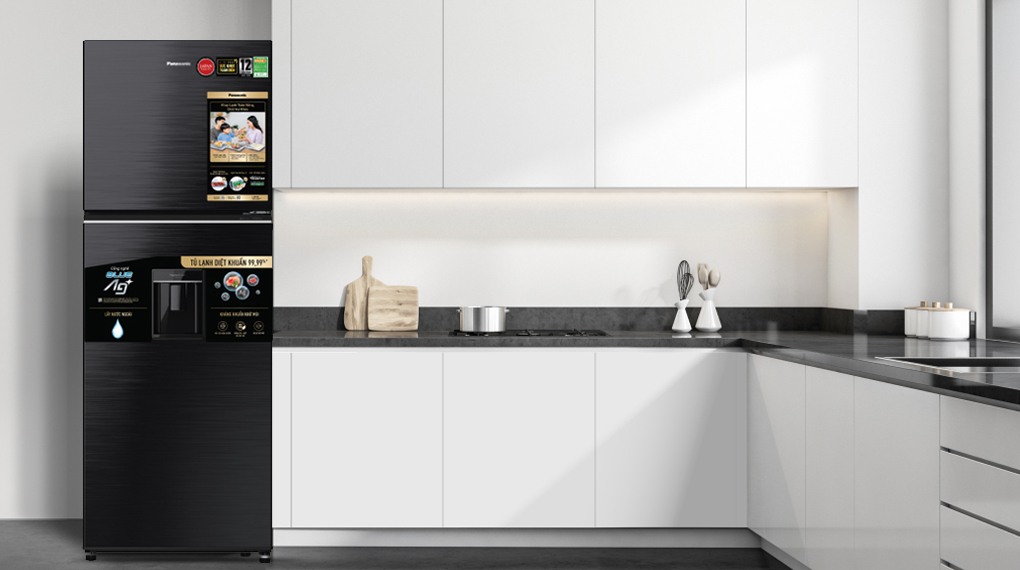 Tủ lạnh Panasonic Inverter 366 lít NR-TL381GVKV thiết kế trang nhã, sang trọng, làm lạnh thực phẩm đồng đều với công nghệ làm lạnh vòng cung Panorama, đảm bảo hiệu suất làm lạnh và tiết kiệm điện với công nghệ Inverter, Multi Control cùng cảm biến thông minh Econavi, hỗ trợ công nghệ Blue Ag+ giữ cho ngăn tủ luôn sạch khuẩn.