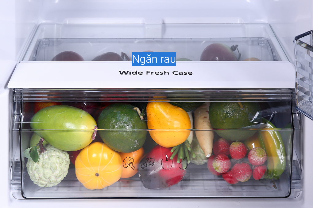 Ngăn rau quả Wide Fresh Case có dung tích 30 lít và thiết kế góc mở lớn khi kéo ra, dễ dàng cho các loại rau củ có kích thước lớn vào trong ngăn để bảo quản.