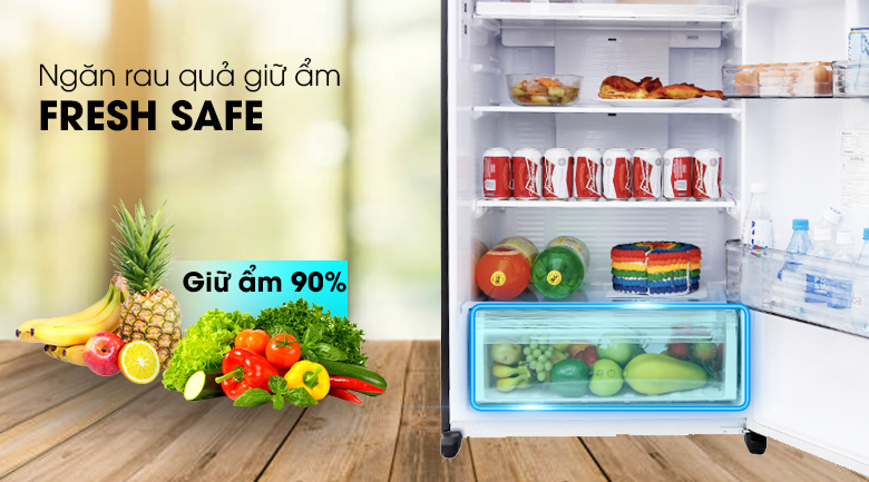 • Ngăn rau củ Fresh Safe giữ ẩm 90% cho rau củ tươi ngon.