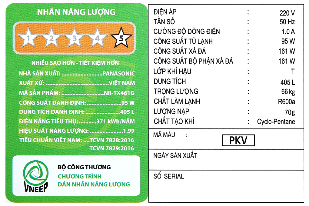 • Dung tích sử dụng: 405 lít - 4 - 5 người