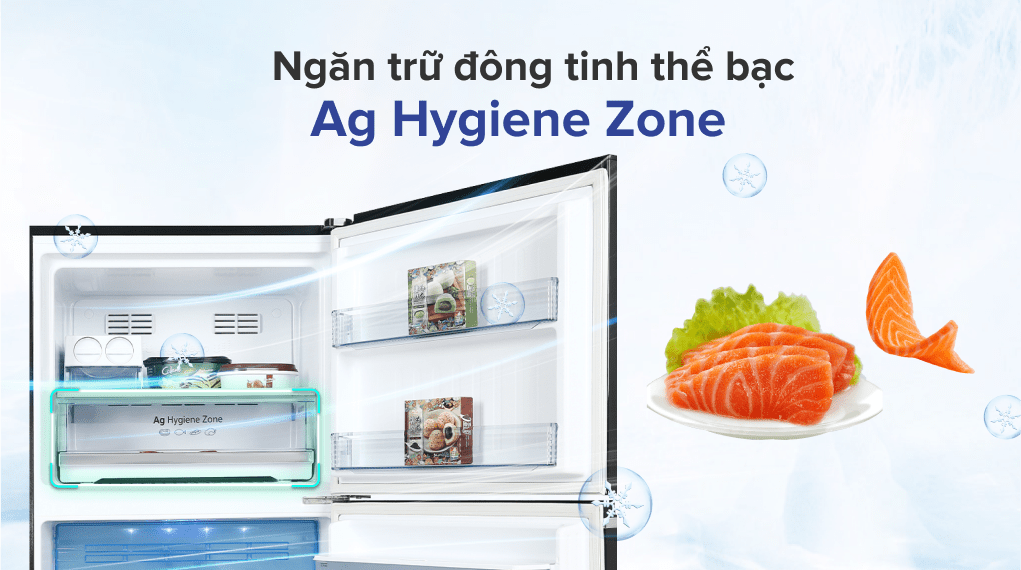 Mẫu tủ lạnh ngăn đá trên Panasonic được thiết kế ngăn trữ đông tinh thể bạc -3 độ C, giúp cho thực phẩm tươi sống như thịt, cá và hải sản duy trì được độ tươi ngon cũng như các chất dinh dưỡng vốn có bên trong thực phẩm.