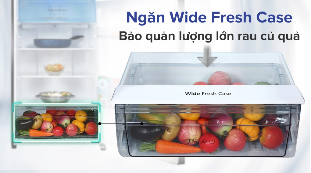 Ngăn Wide Fresh Case sở hữu dung tích đến 25 lít, đáp ứng nhu cầu lưu trữ lượng lớn các loại rau củ quả. Hơn nữa, ngăn rau này còn có khả năng duy trì được độ ẩm nên giảm thiểu được tình trạng héo hoặc úng trong suốt thời gian bảo quản.