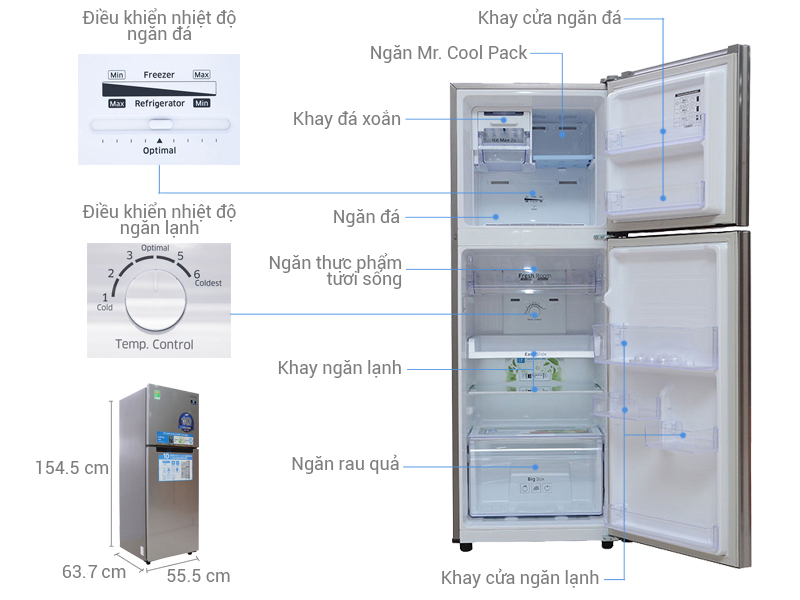 • Chất liệu cửa tủ lạnh: Kim loại phủ sơn tĩnh điện