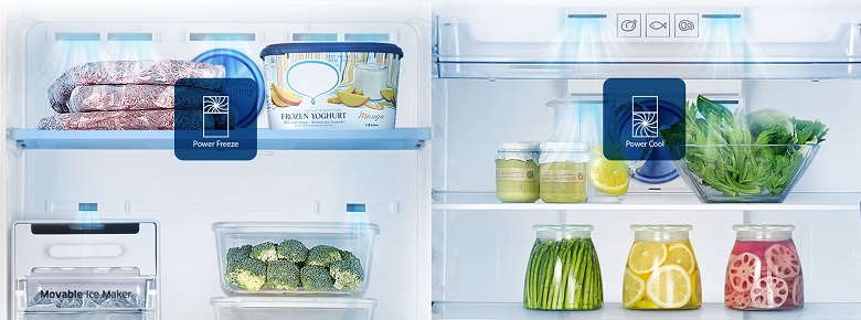 Thực phẩm và thức uống sẽ nhanh chóng được làm lạnh chỉ với một nút bấm. Hơn nữa, với chế độ làm đông nhanh, tủ lạnh 2 cửa này có khả năng làm đá trong khoảng thời gian ngắn. Bạn sẽ luôn được tận hưởng một cốc nước mát lạnh ngay khi về đến nhà.