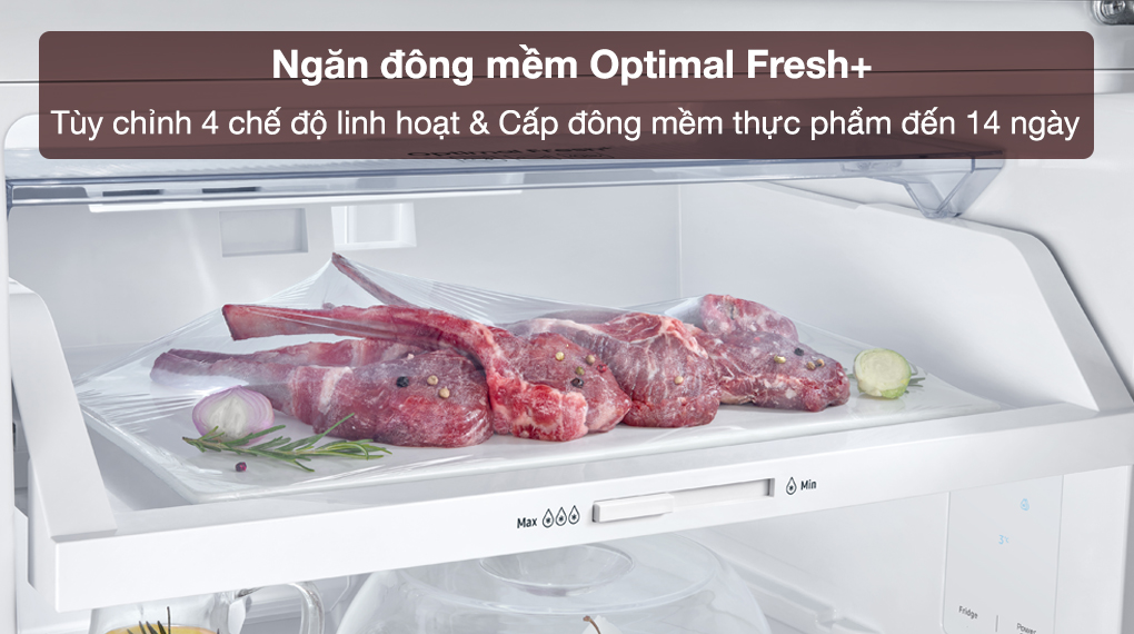 – Ngăn đông mềm Optimal Fresh+: Được thiết kế kín, giảm thiểu tình trạng lẫn mùi thực phẩm, đồng thời cho phép bạn tùy chỉnh 4 chế độ linh hoạt theo nhu cầu lưu trữ và nhóm thực phẩm bảo quản như: