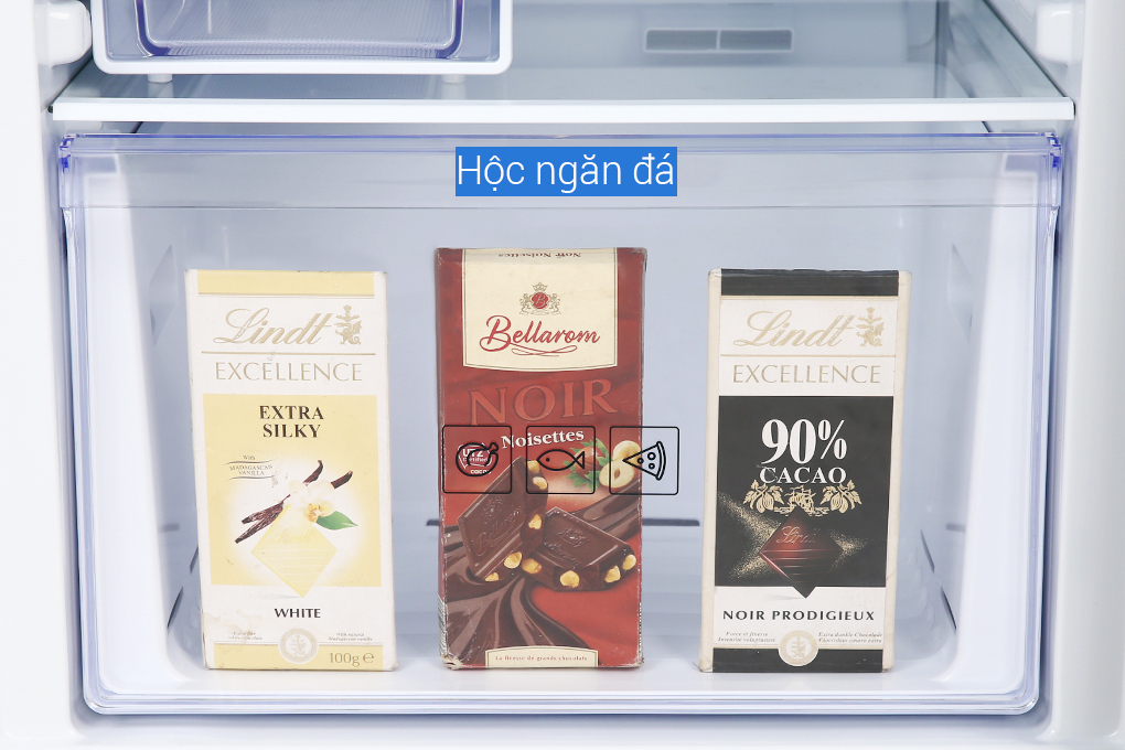 Người dùng có thể linh hoạt thay đổi vị trí của hộp đá trong ngăn đông tùy theo nhu cầu sử dụng không gian chứa thực phẩm. Hộp đá có thiết kế dạng xoắn, người dùng chỉ cần xoay nhẹ là đá sẽ rớt xuống hộp.