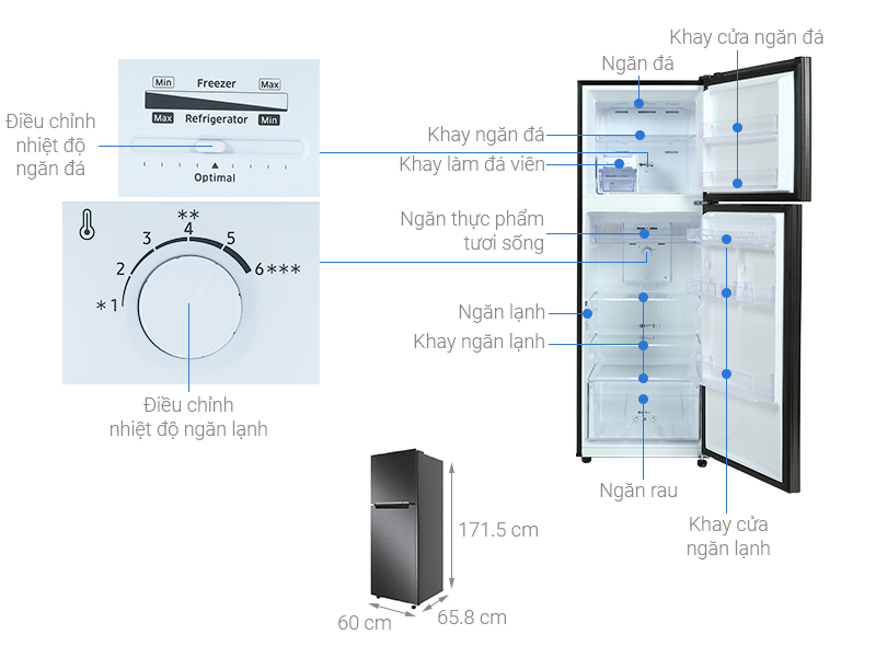 – Có các ngăn kệ bên trong và bên trên cánh tủ nên dễ dàng phân loại thực phẩm theo nhu cầu.