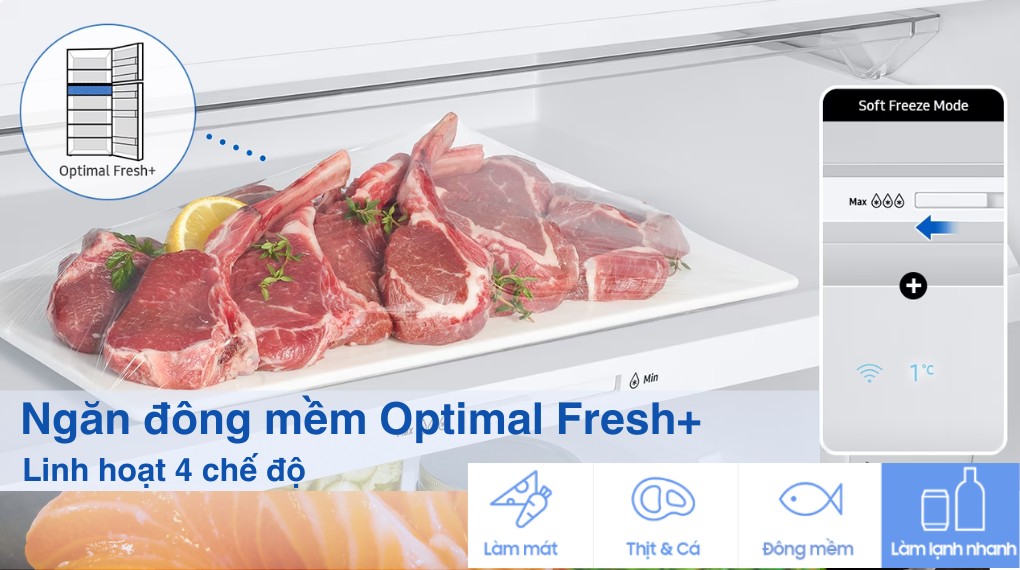 • Công nghệ bảo quản thực phẩm: Ngăn đông mềm Optimal Fresh+