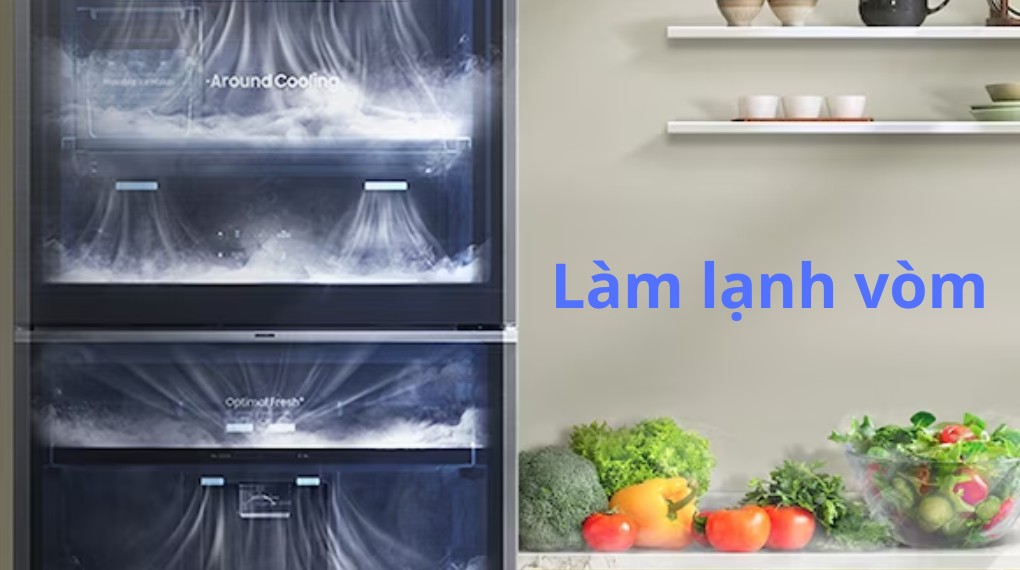 Công nghệ All-around Cooling – Hệ thống làm lạnh vòm, giúp hơi lạnh di chuyển đều khắp nơi thông qua hệ thống lỗ được bố trí thông minh, từ đó tạo điều kiện để thực phẩm được tươi ngon lâu hơn. Không chỉ vậy, công nghệ này có kiểm soát chặt chẽ sự thay đổi của nhiệt độ và duy trì nhiệt độ, độ ẩm ổn định.