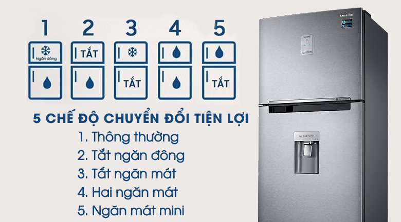 Tủ lạnh Inverter này còn được trang bị 5 chế độ chuyển đổi linh hoạt, giúp bạn có thể tùy ý thay đổi tính năng làm lạnh của ngăn đông và ngăn mát sao cho phù hợp với nhu cầu sử dụng. Thật tuyệt vời phải không nào?