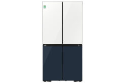 Tủ lạnh Samsung Inverter 599 lít RF60A91R177/SV có thiết kế 4 cửa kiểu Pháp sang trọng, kết hợp với mặt kính Glam Glass đầy tinh tế cùng tông màu trắng – xanh Navy hiện đại tạo điểm nhấn cho không gian bếp.