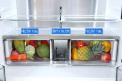 Chiếc tủ lạnh này có dung tích ngăn đá là 215 lít và ngăn lạnh là 384 lít phù hợp để bảo quản thực phẩm cho những gia đình đông người trên 5 thành viên.