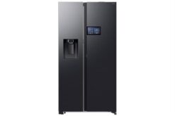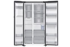 Tủ lạnh Side by Side Samsung RS90F65D2FSV nổi bật với thiết kế Side By Side hai cánh rộng rãi, phủ lớp hoàn thiện màu bạc ánh kim (Stainless Steel) cao cấp, mang lại vẻ đẹp tinh tế và hiện đại. Tay nắm ẩn được tích hợp khéo léo vào thân tủ, tạo nên bề mặt phẳng mượt mà, không chỉ thẩm mỹ mà còn dễ lau chùi, giữ cho tủ luôn sáng bóng như mới.