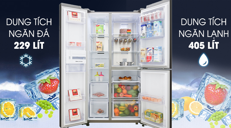 Dung tích lên đến 634 lít, thoải mái cho gia đình trên 5 người sử dụng