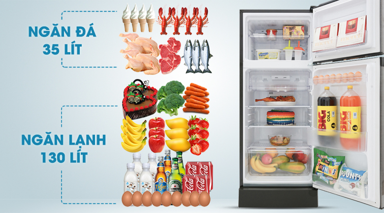 Với dung tích 165 lít, tủ lạnh là sự lựa chọn lý tưởng cho gia đình 2 – 3 người.