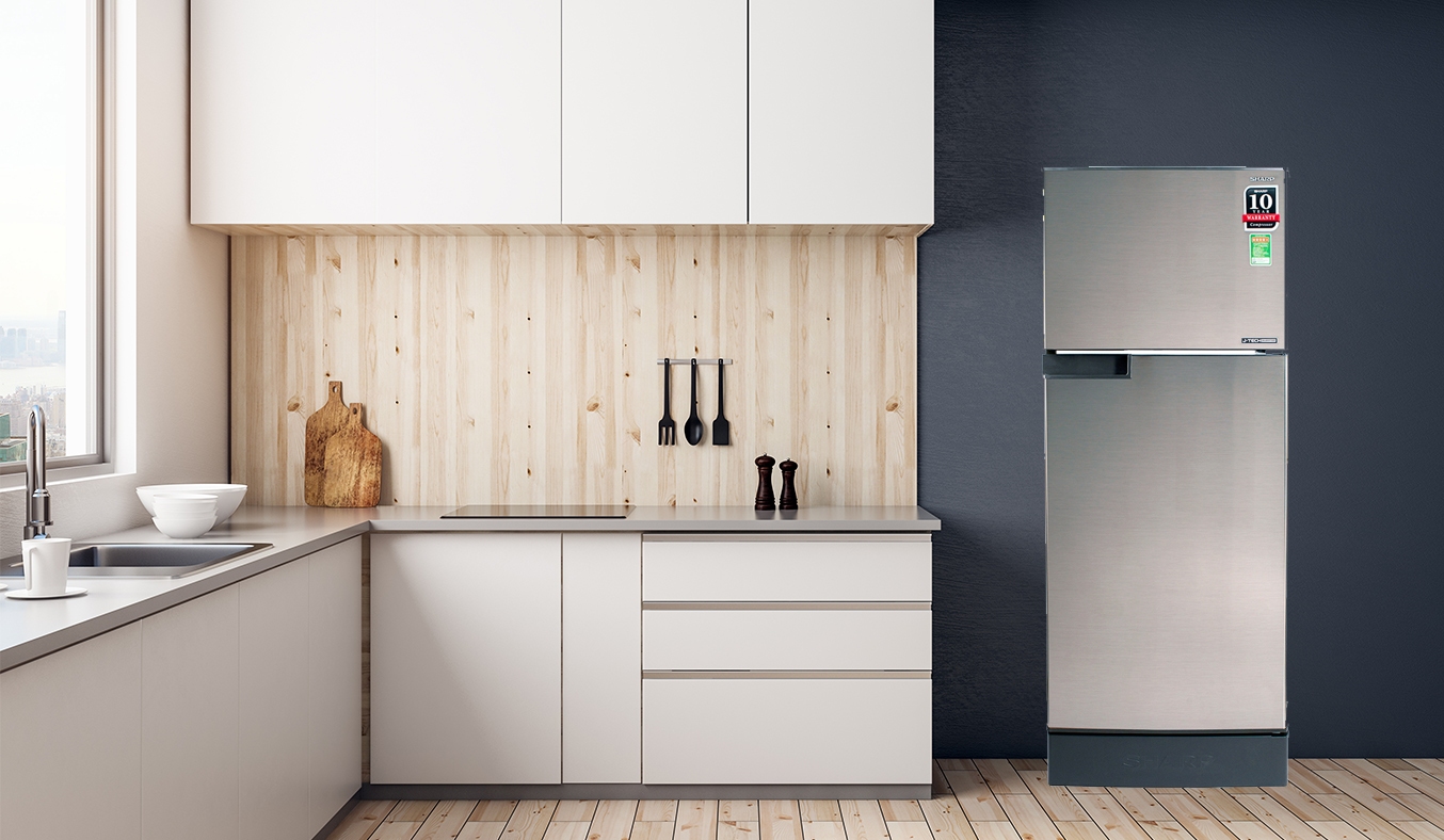 Tủ lạnh Sharp Inverter 165 lít SJ-X196E-SL có vỏ ngoài màu bạc sang trọng, làm đẹp thêm cho gian bếp nhà bạn. Tủ lạnh Sharp có thiết kế ngăn đá trên truyền thống, tạo cảm giác gần gũi và quen thuộc với người dùng. Bên cạnh đó, tủ còn có khả năng đáp ứng tốt nhu cầu sử dụng của gia đình từ 2 – 3 người, nhờ vào dung tích lên đến 165 lít